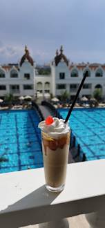 Ausblick zum Pool von der Cafeteria