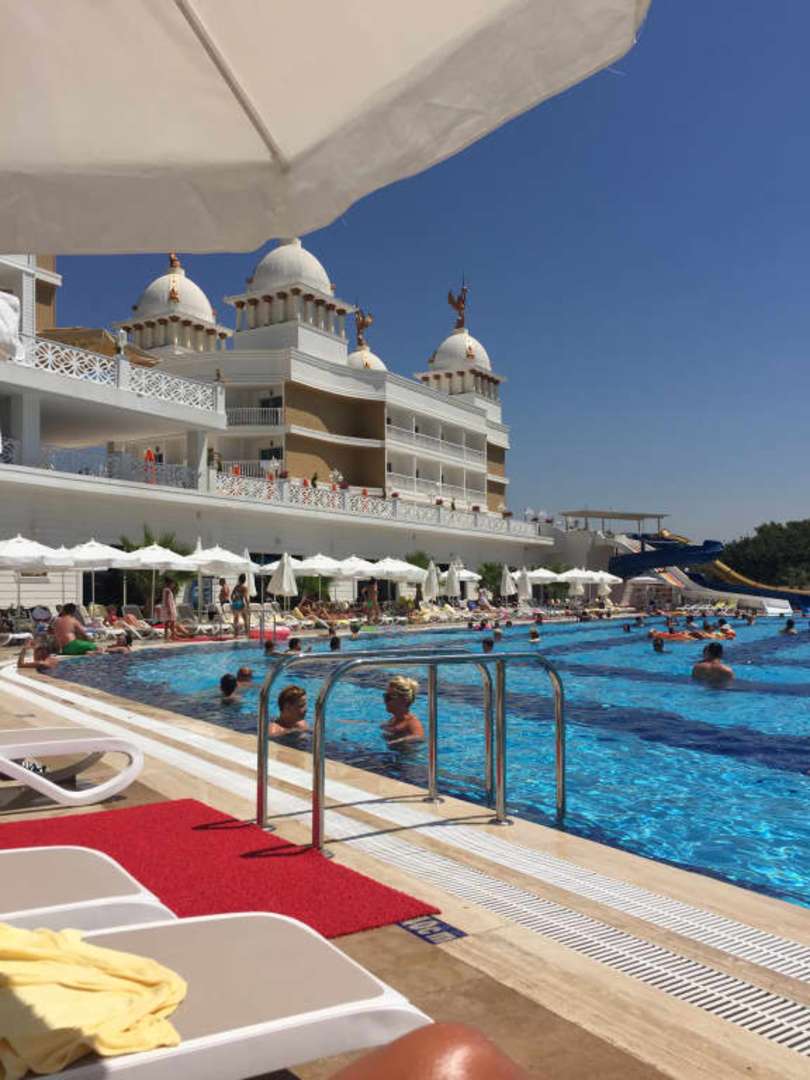 Widok na budynek hotelowy z basenu