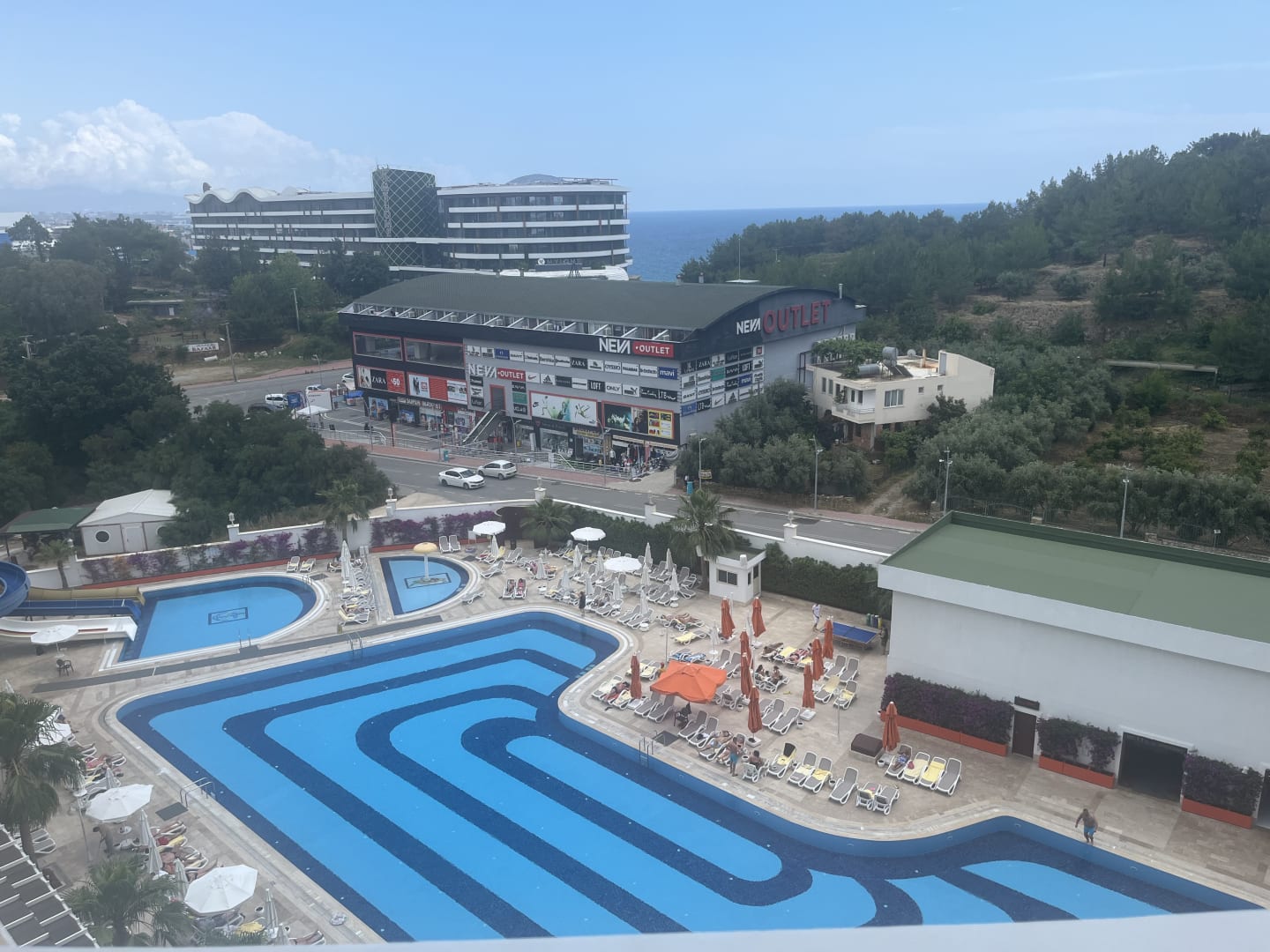 Außenansichtshopping neemt een beetje het mooie zicht weg wat jammers is voor de rest prima hotel .