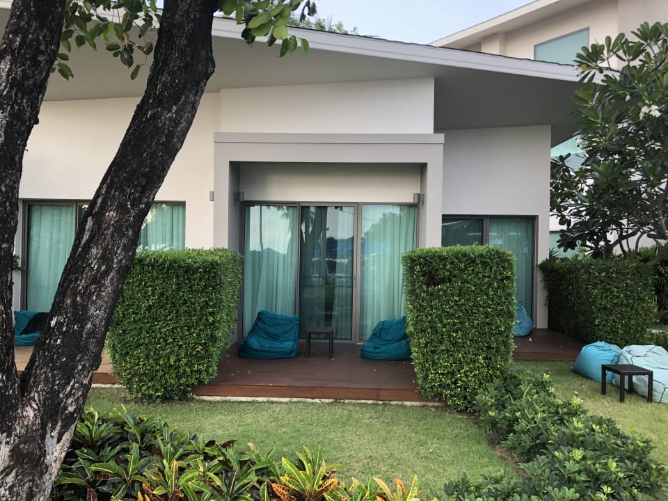 Terrasse mit Sitzkissen beim Pool-Room