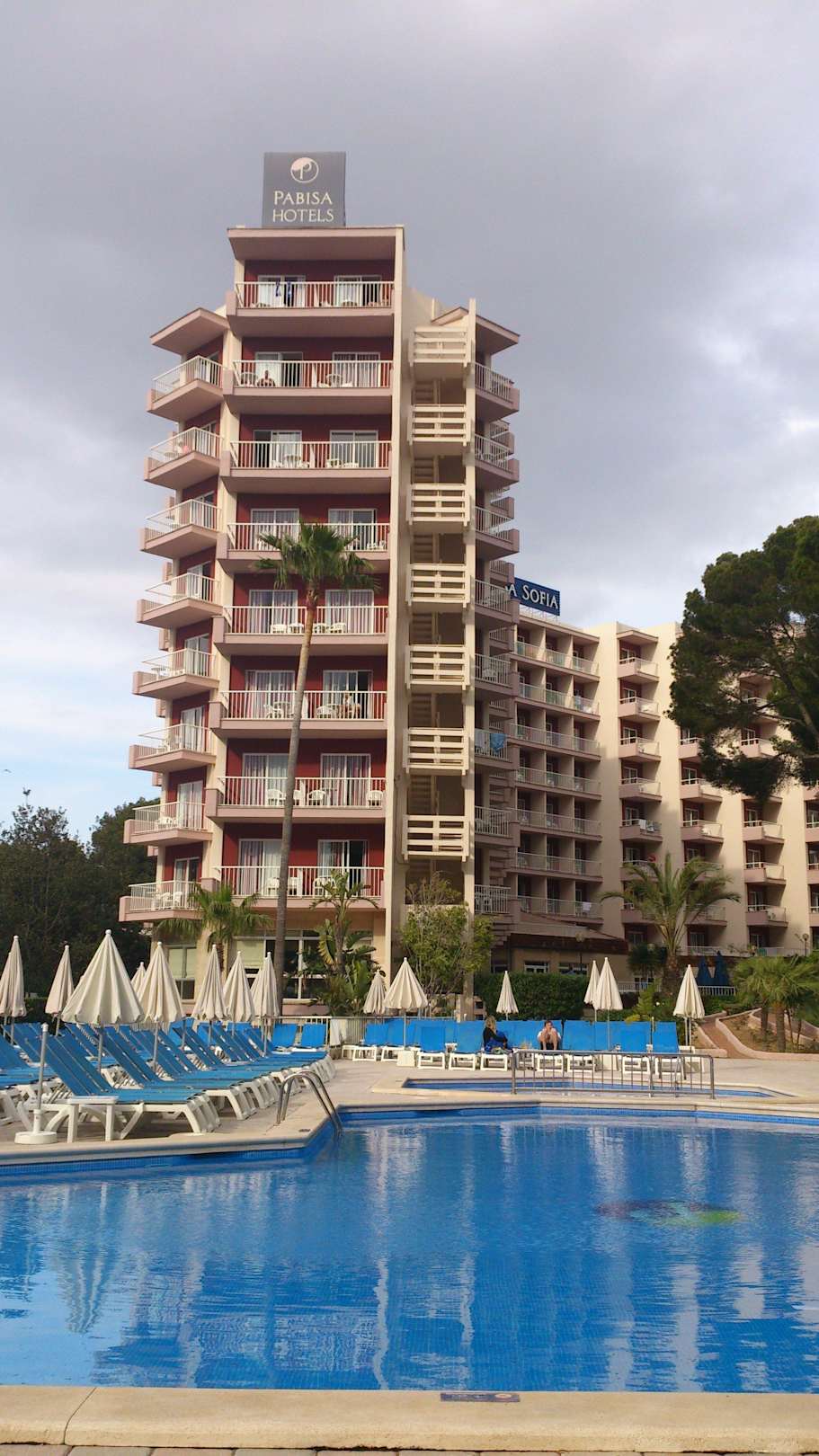 Pool und Hotel am Abend