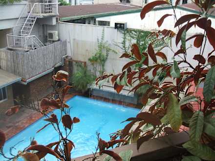 Blick vom Zimmer/Gang zum Pool