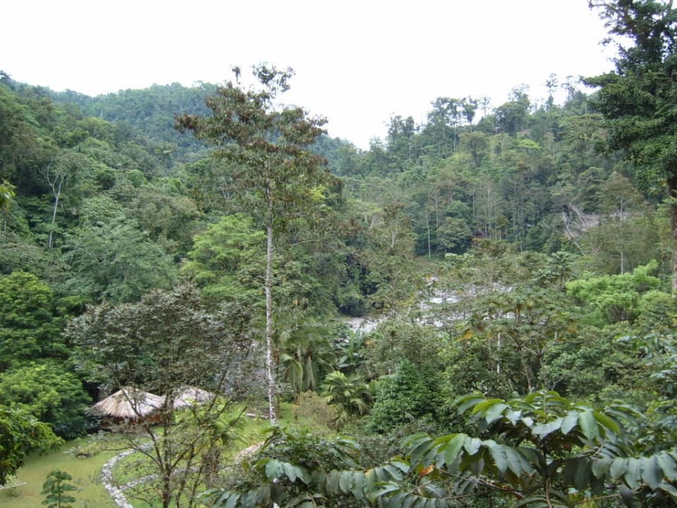 Blick von Hängebrücke auf die anderen Bungalows.