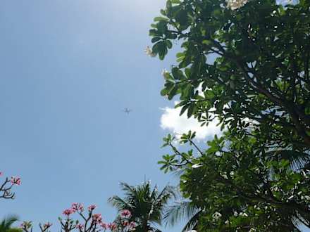 Die Nähe zu Kuta macht sich bemerkbar. Reger Flugverkehr am Himmel. Gott sei Dank haben die Flugzeuge hier noch oder schon Höhe, so dass sich der Lärm in Grenzen hält.