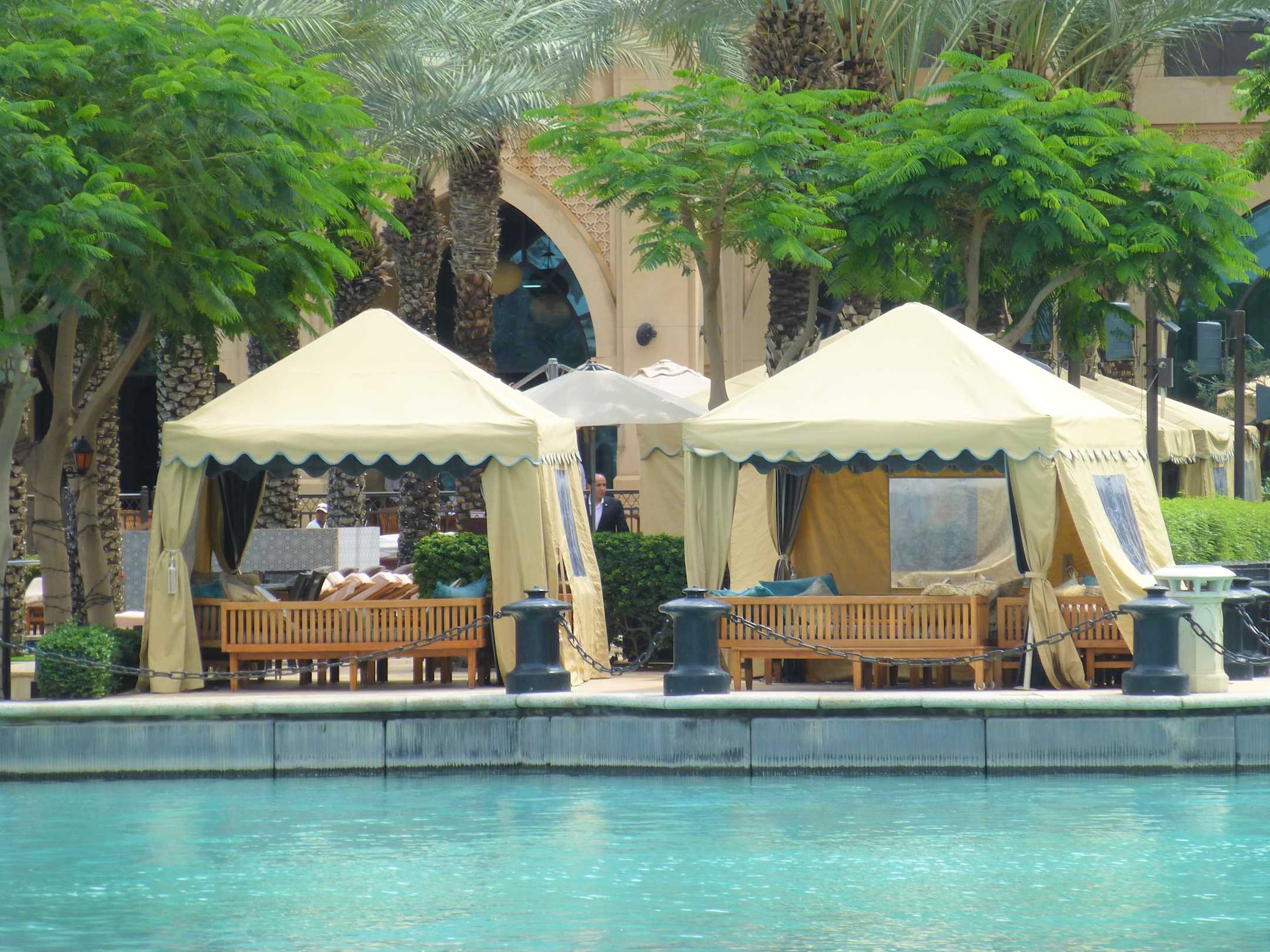Lounge- und Liegezelte am Pool.