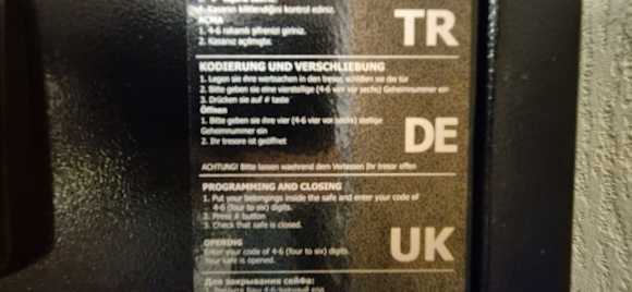 Beschreibung mehrsprachig zur Bedienung des Tresors