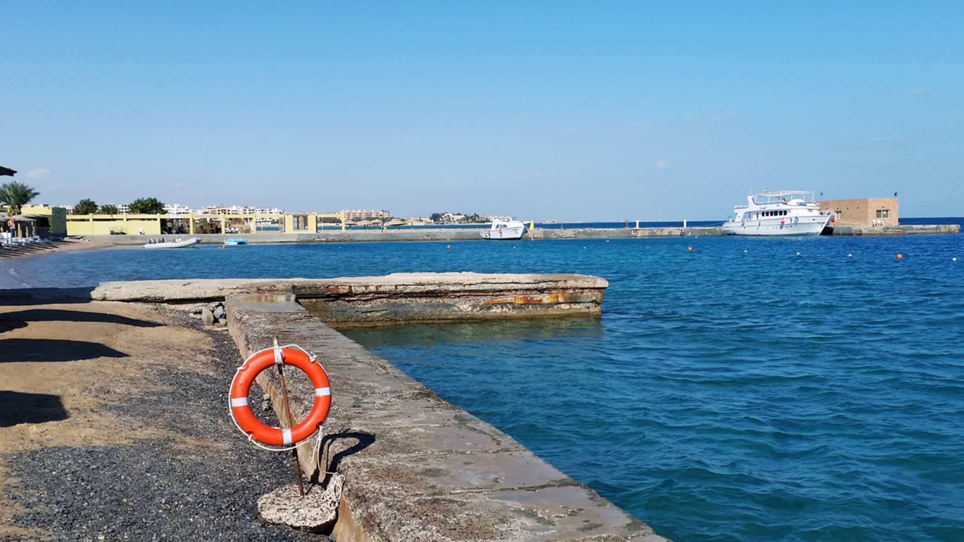Links kleiner Anlegeplatz für Schnorchel/Taucher Ausflüge