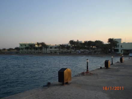 Blick vom Anleger auf das Hotel