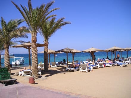 der rechte feinere Strandabschnitt, links davon die Strandbar