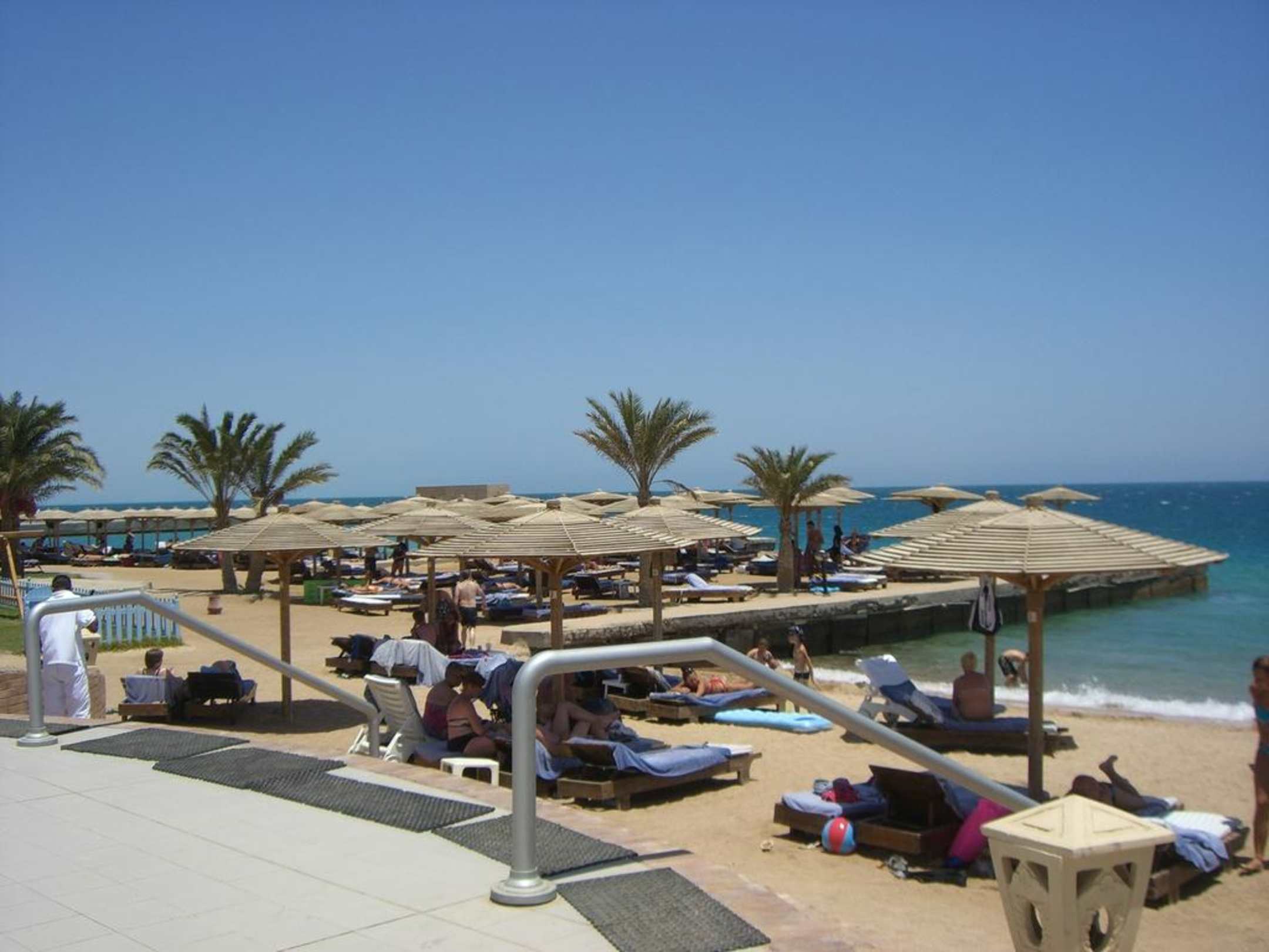 Blick auf die Liegen am Strand