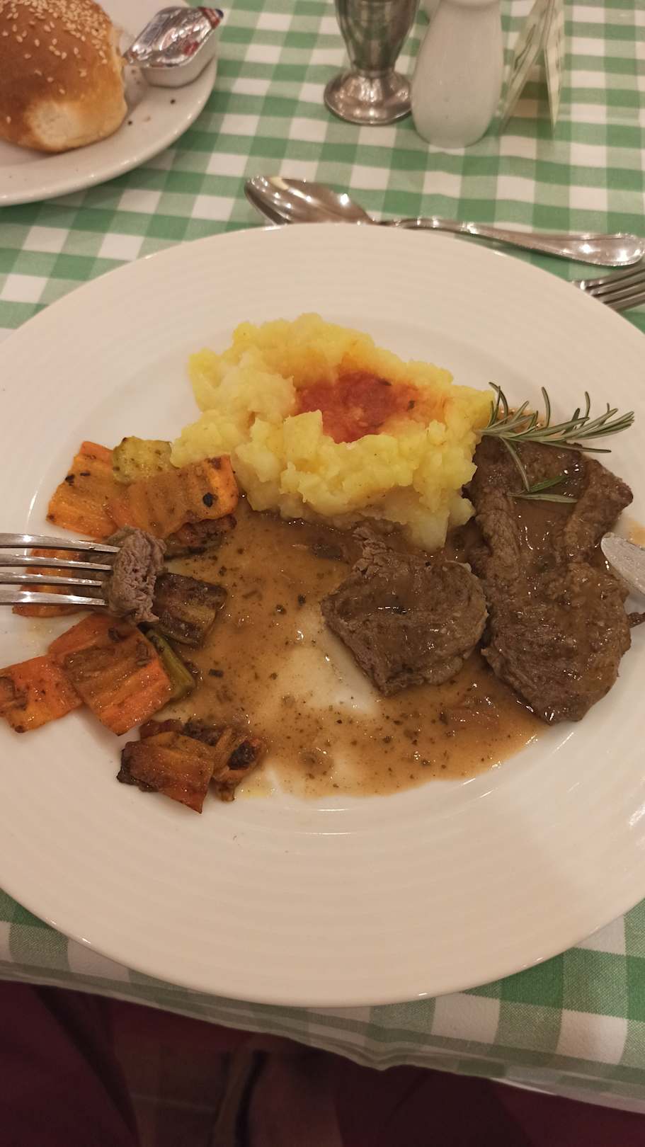 GastroUnd das ist das "Pfeffersteak" vom Rind, very extremely well done also durcher als durch - siehe Schnittfläche - aber irgendwo vom Rind.