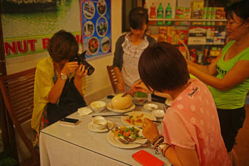 Chung serviert ein gekochtes Strausenei