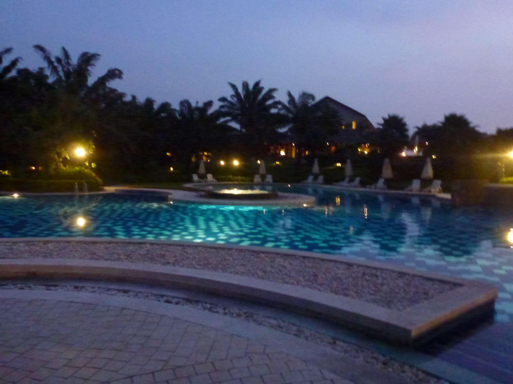 Poolanlage am Abend