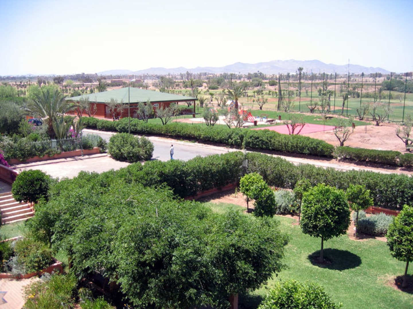 Aussicht auf Gartenanlage und Kinderclub