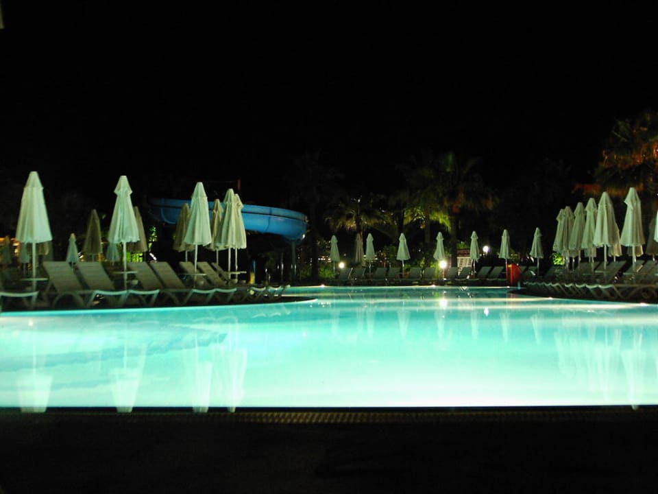 Pool by NightIm Hintergrund ist eine der beiden Rutschen zu sehen. Später wurde in der Mitte des Pools noch eine Brücke rüber gebaut.