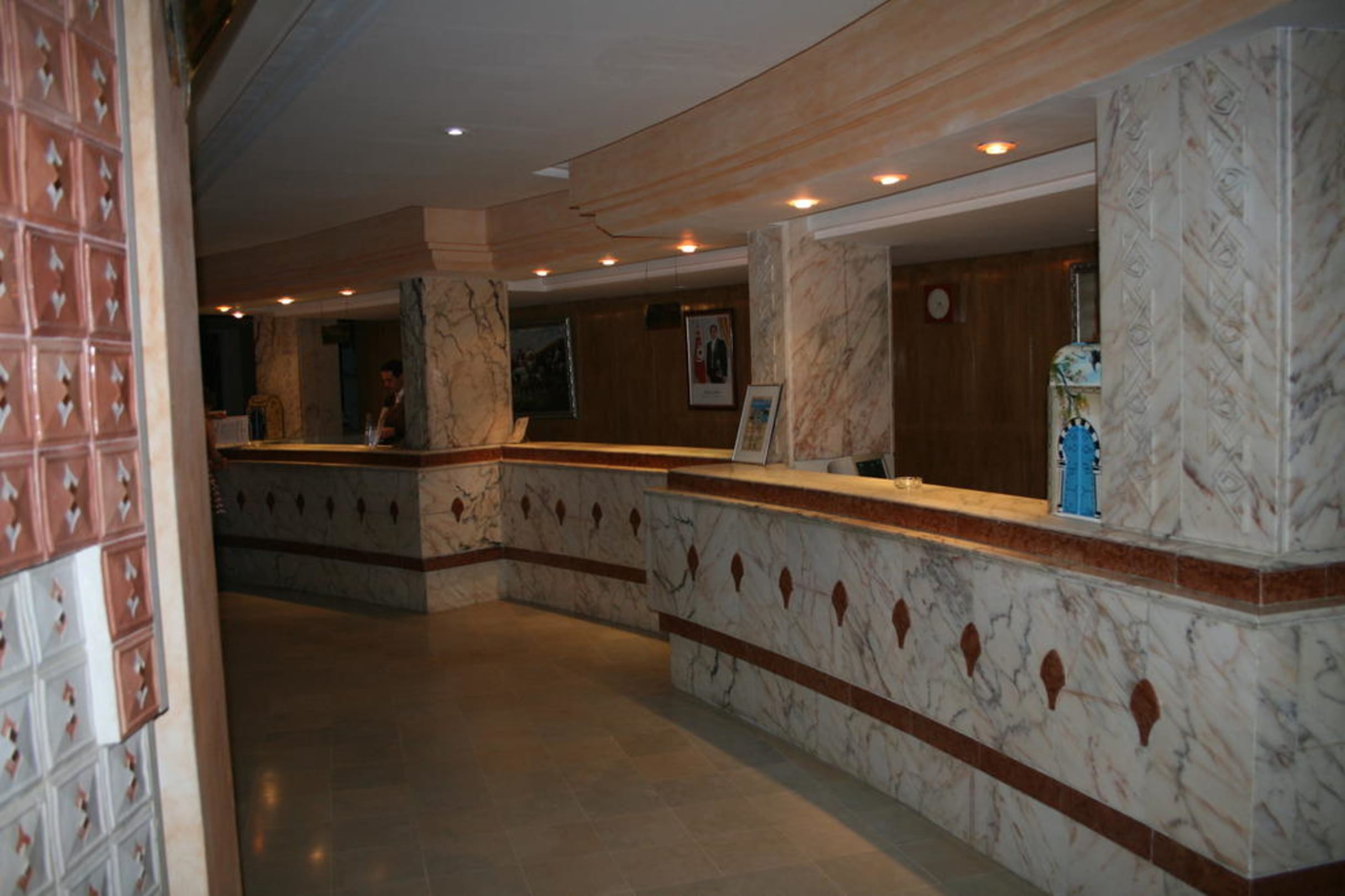 Rezeptiondas blaue ziemlich rechts ist der Hotelbriefkasten, in typischer Optik bemalt - in Tunesien sind fast alle Türen blau