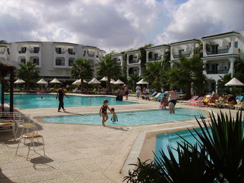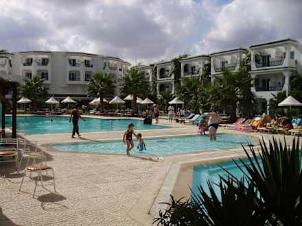 PrimaSol Golden Beach SkanesDie Poolanlage vom Golden Beach in Skanes ist umrahmt von Hotelgebäuden der Anlage.