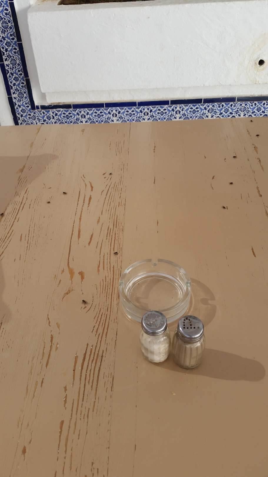 Fliege sind auf dem Esstisch.