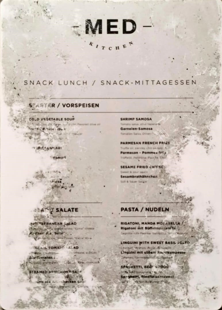 GastroKarte im Med Kitchen. Dies ist keine Fotomontage. So sah die Karte wirklich aus!!!!!!