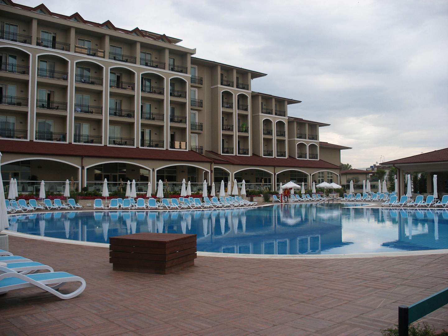 Teil der Poolanlage mit Haupthaus