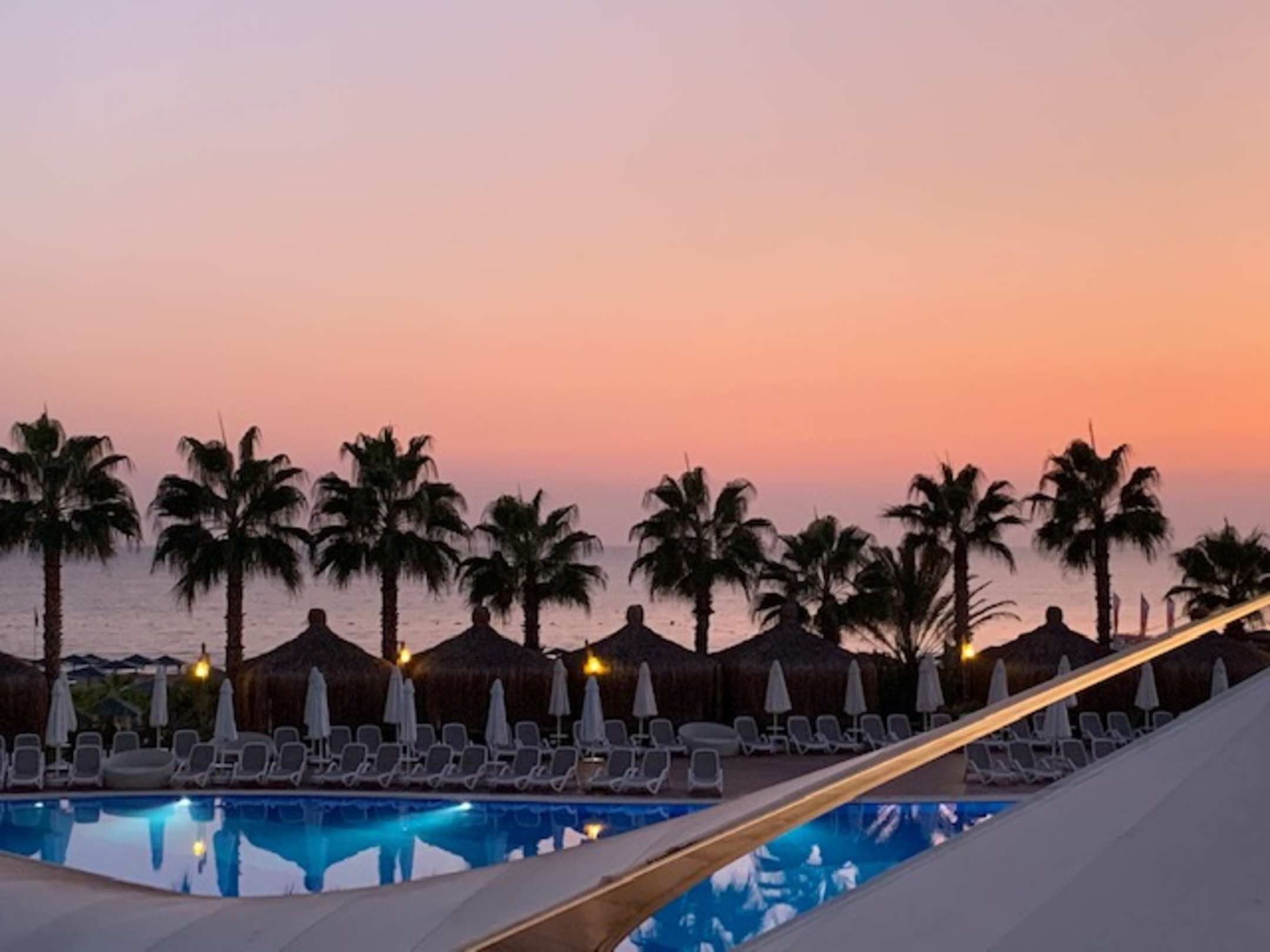 Ausblick beim Abendessen aus dem Restaurant aufs Meer