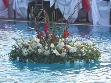 Blumengesteck im PoolZum Geburtstag des Hotels wurden schicke Blumengestecke in den Pool gelegt..Toll