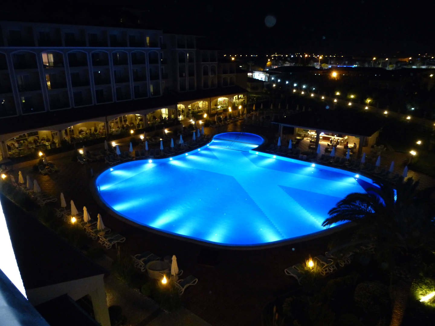 Linke Seite des oberen Pools bei Nacht