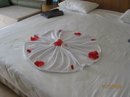 Zimmerfrau mit Handtuchkünsten