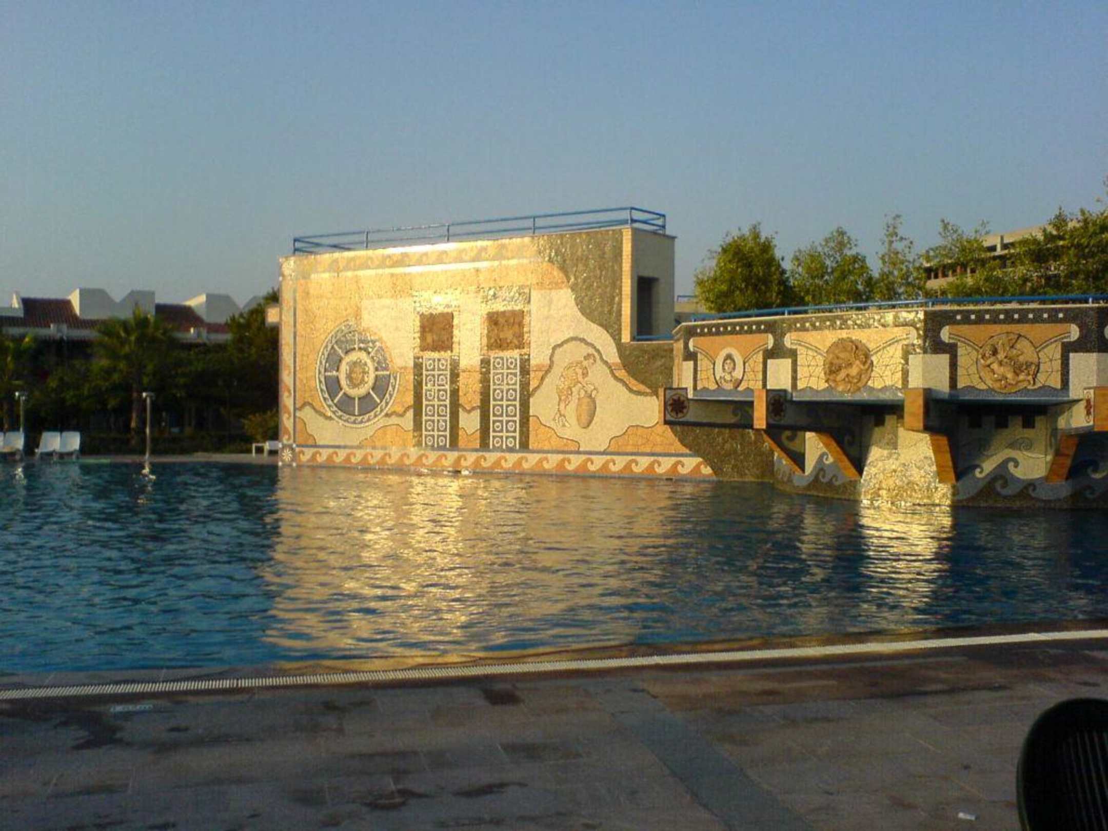 traumhafter PoolAction und Aktivitäten am Tag, romantischer Hintergrund am Abend, Disco mit Fenstern unter Wasser