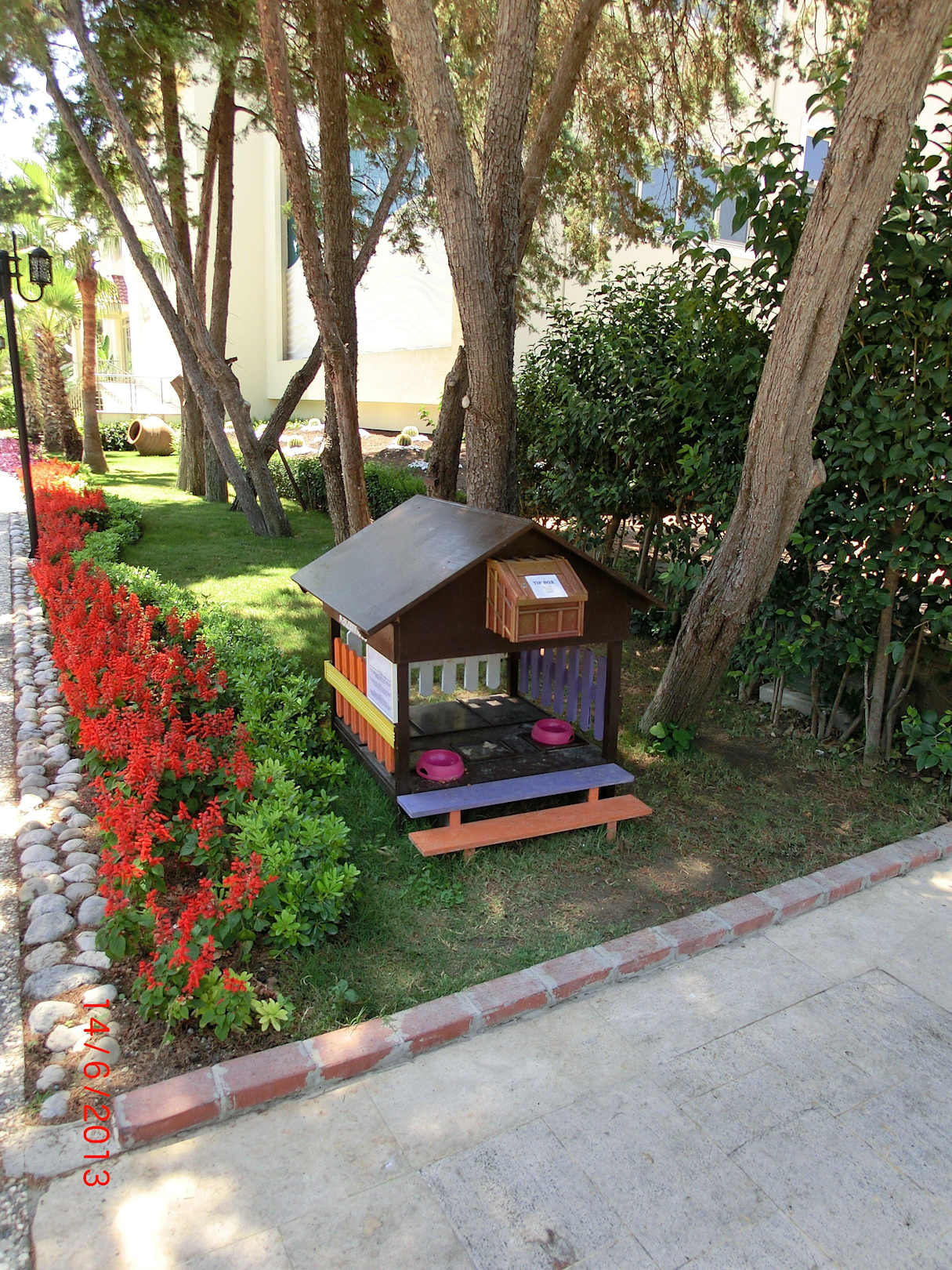Hier wird den Tigern Essen und Trinken serviert, leider können einige Gäste nicht lesen und stellen Essen aus dem Restaurant hin. Bitte lasst das doch, Sie bekommen vom Hotel Katzenfutter! Danke