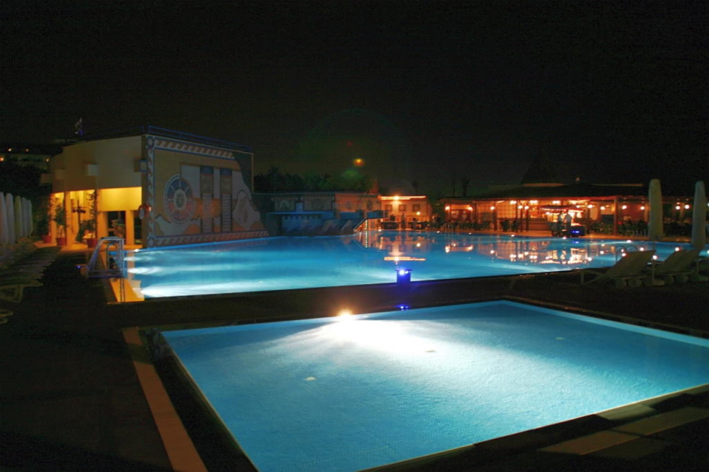 Pool und Poolbar bei Nacht