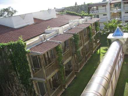 Bungalows vom Haupthaus gesehen. Rechts sind noch andere Bungalows