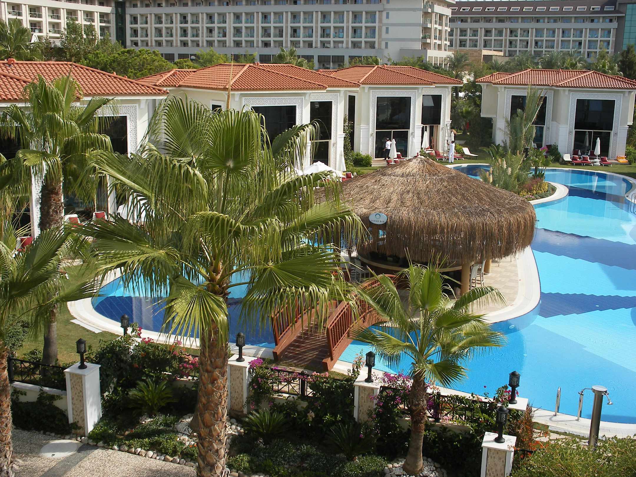 Blick auf die Poolvillen von den Rutschen aus