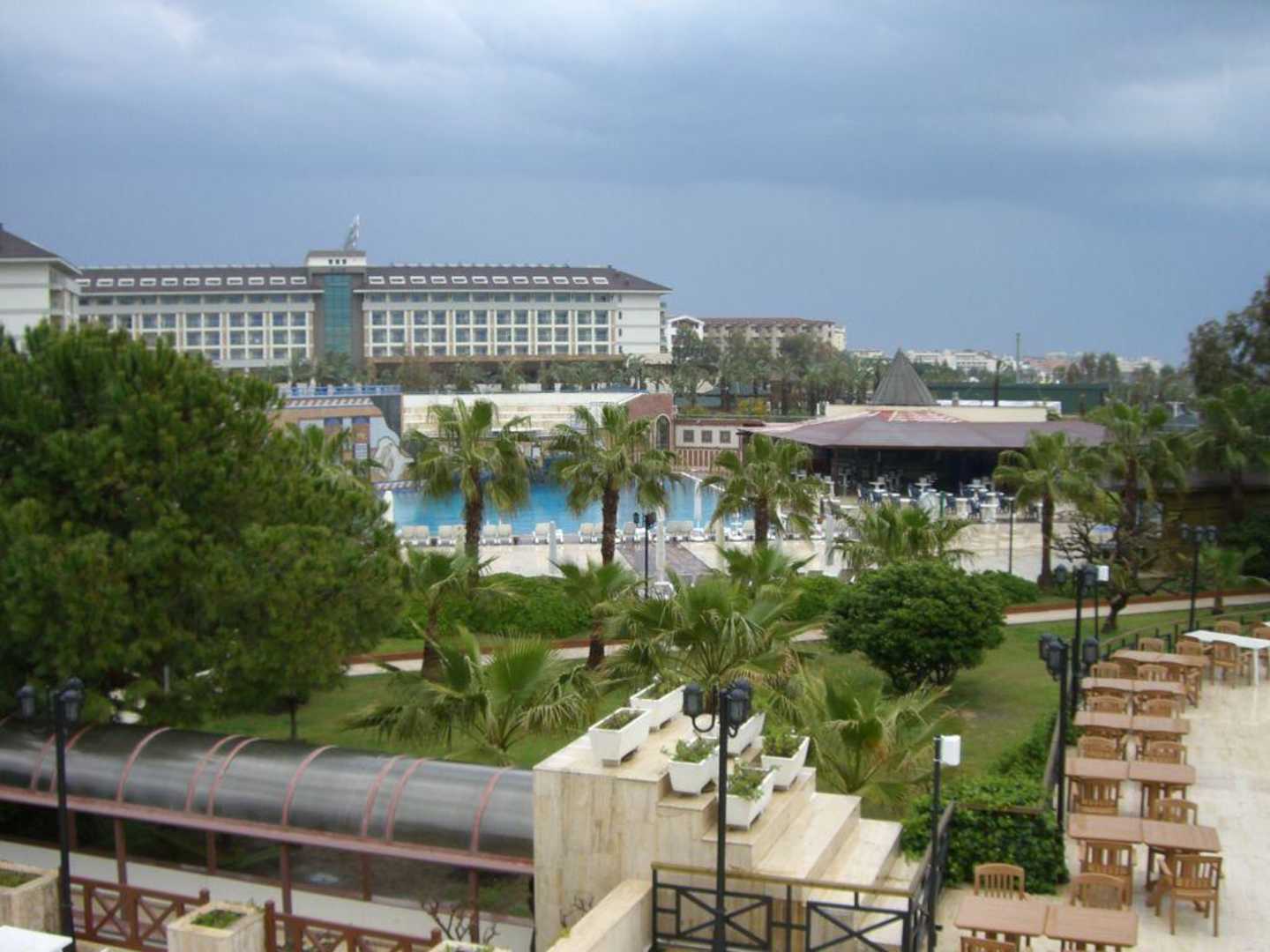 PoolbarAusblick von der Terrassenbar auf die Poolbar, im Hintergrund das Hotel Kumköy Beach Resort und Spa