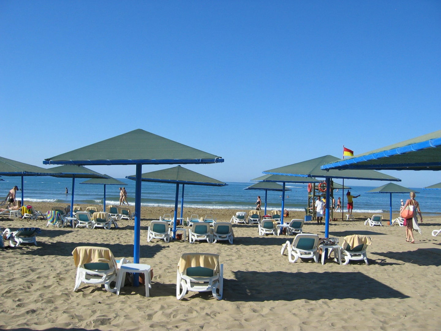 Breiter Strand, viel Platz zwischen den Liegen