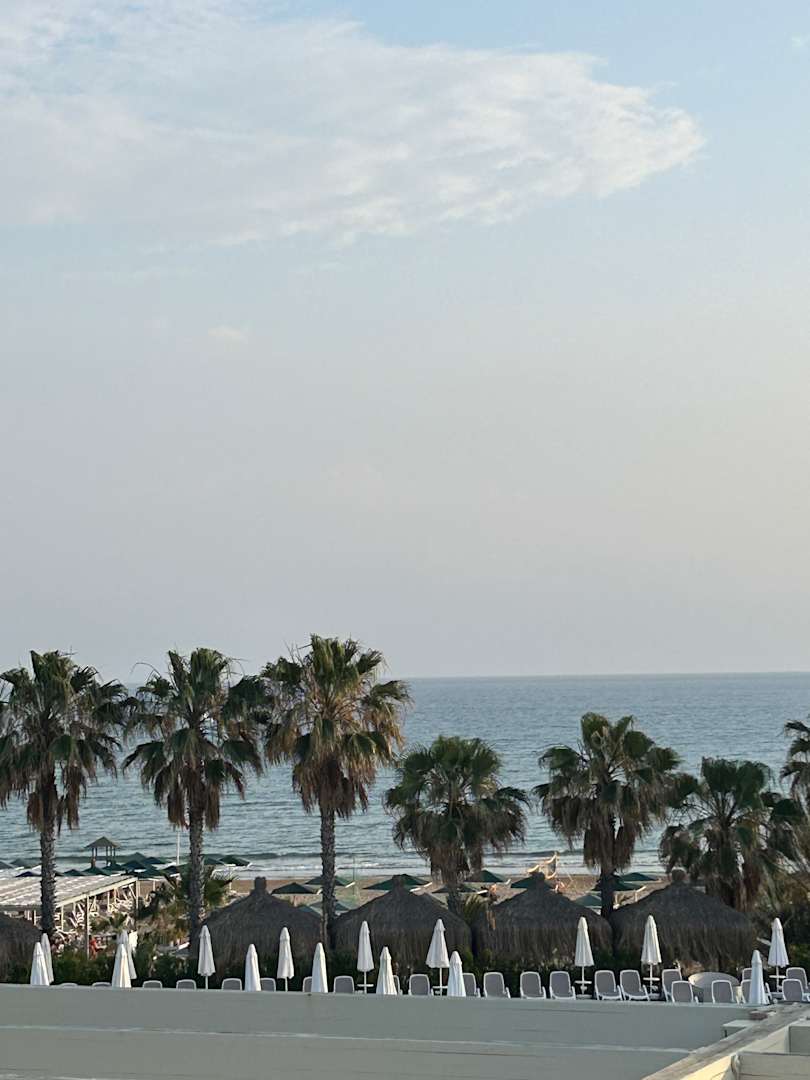 Blick von der Außenterrasse des Hauptrestaurant zum Meer