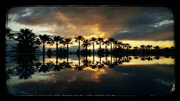 Pool Palmen Meer Sonnenuntergang