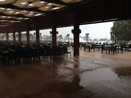 Hauptrestaurant Terrasse bei starkem Regen