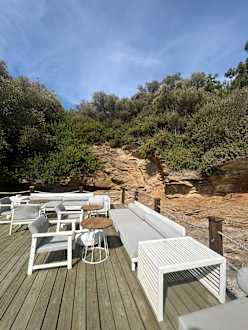 Sitz Möglichkeiten auf dem Steg neben der Bar