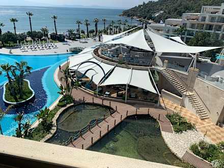 AusblickBlick vom Balkon auf den Pool und das Restaurant