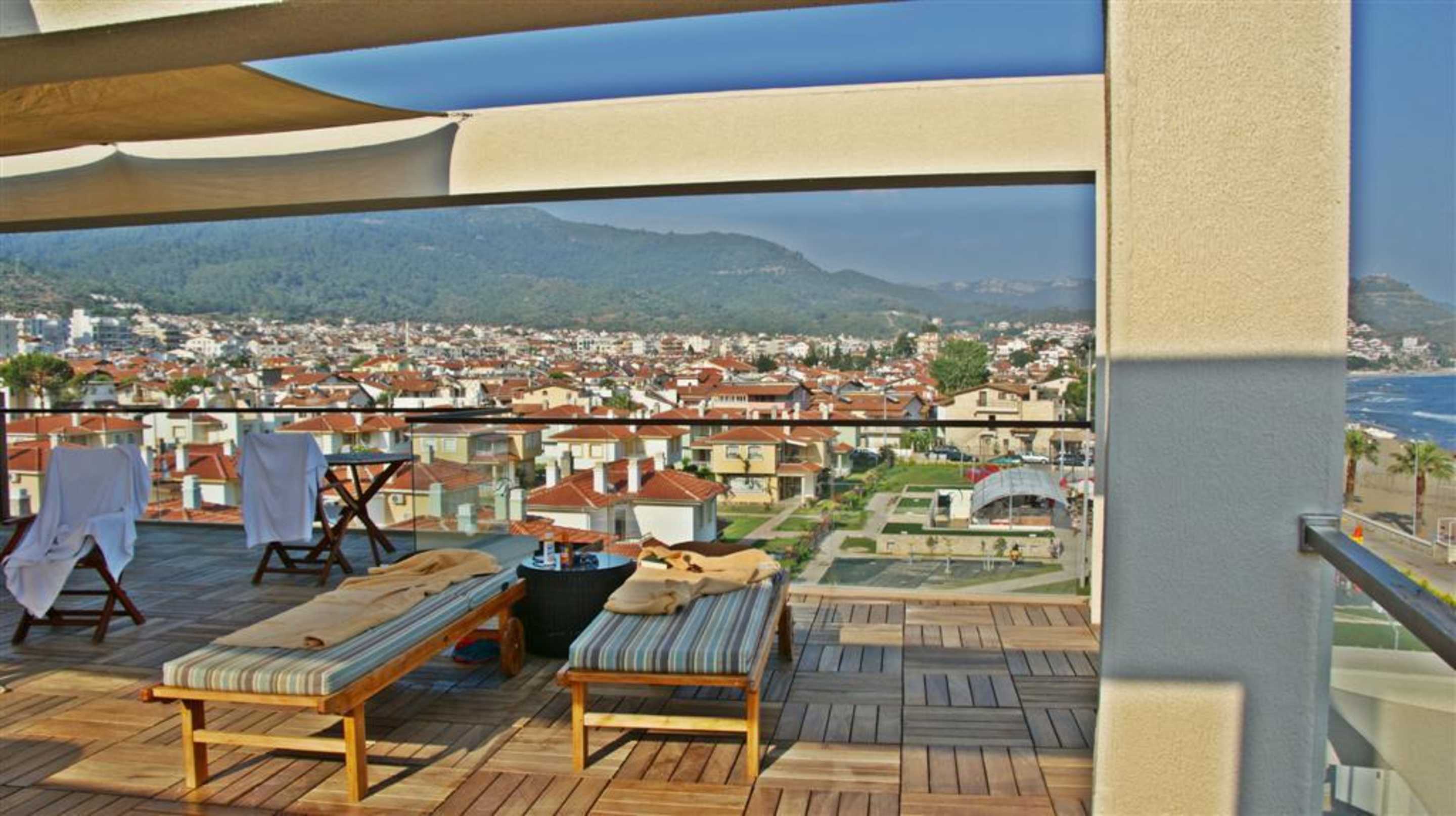 Mitten im LebenWir hatten uns für unsere Suite diese Seite des Hauses gewünscht...und bekommen!! Herrlich den Strand zu sehen, aber auch einen Teil von Özdere.