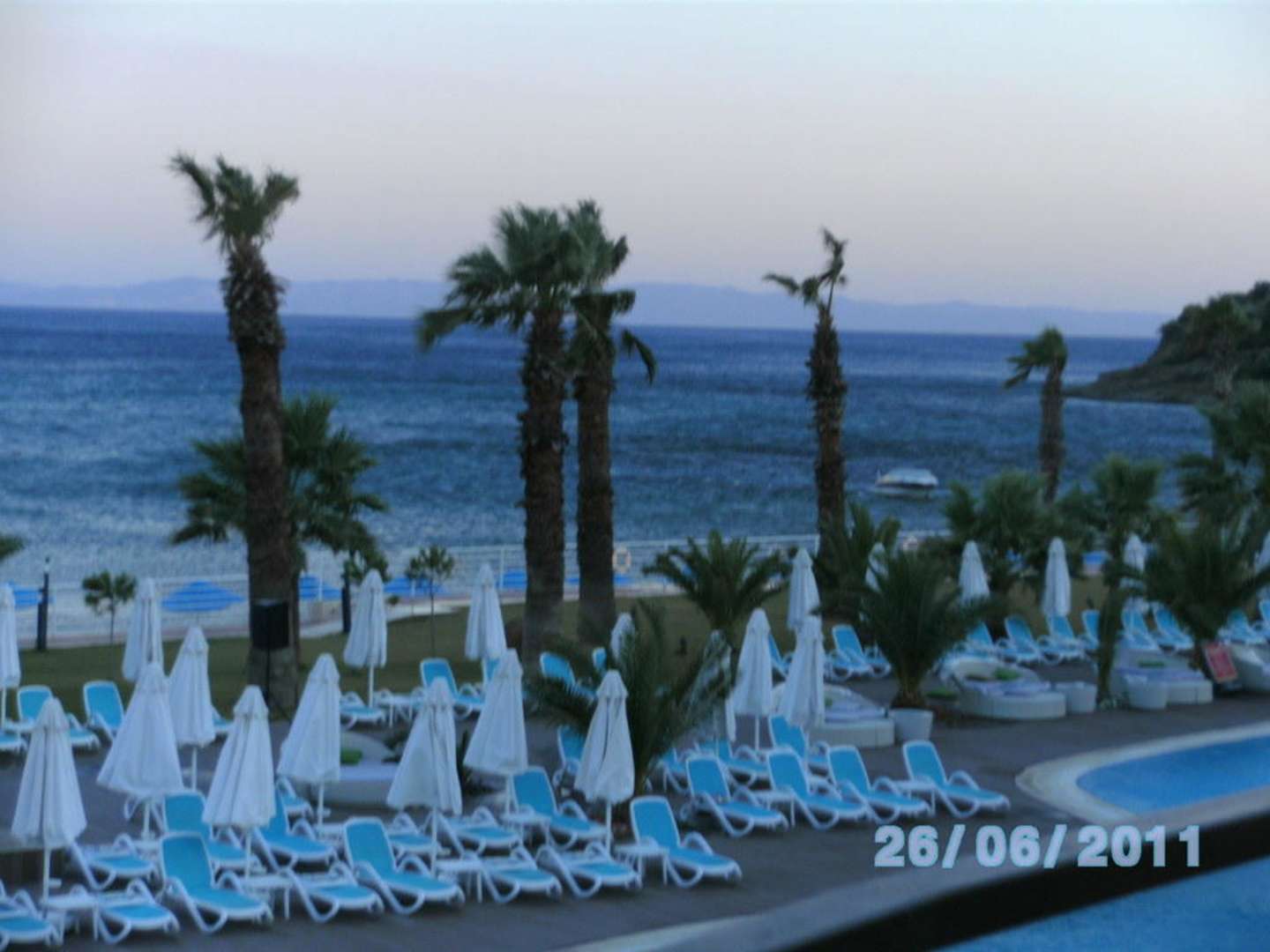 Pool mit Blick aufs Meer am Abend