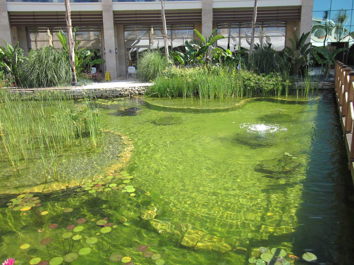 Schön angelegte Teiche mit Seerosen