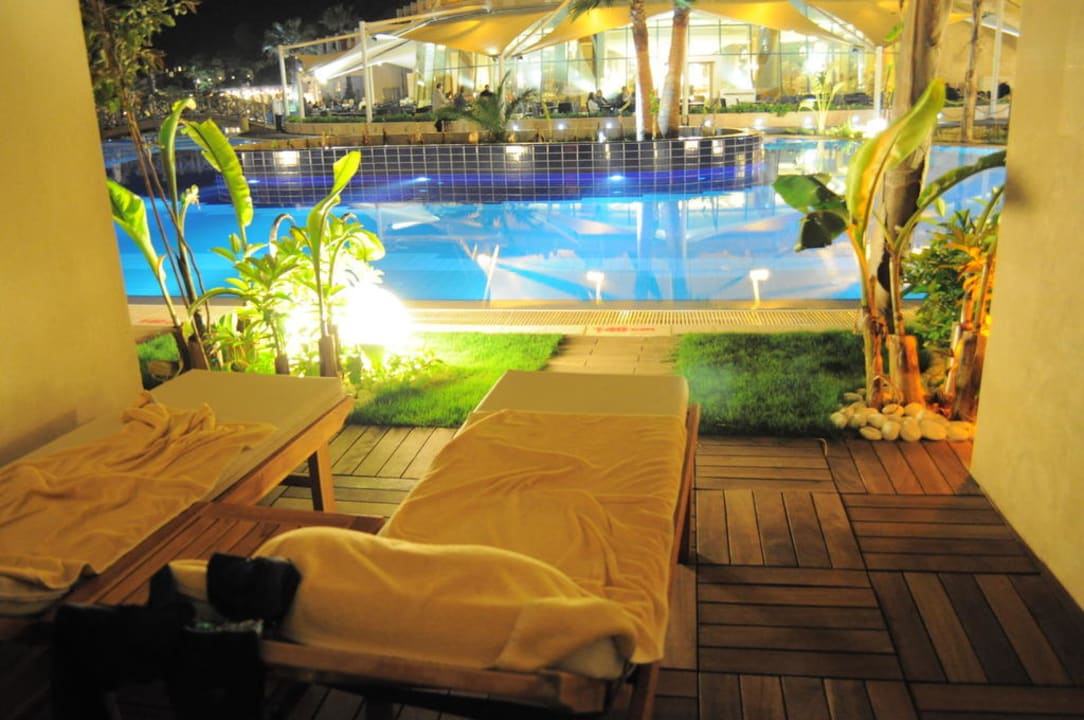 Unsere Poolterrasse am Abend