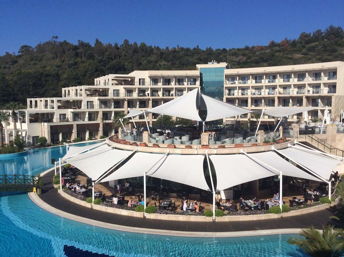 Unten das Hauptrestaurant, oben die Hauptbar