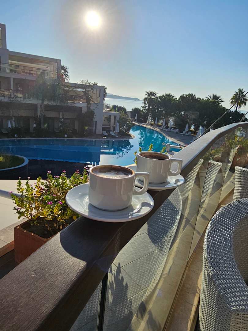 Morgenritual, türkischer Mokka mit Traumausblick auf der Terrasse.