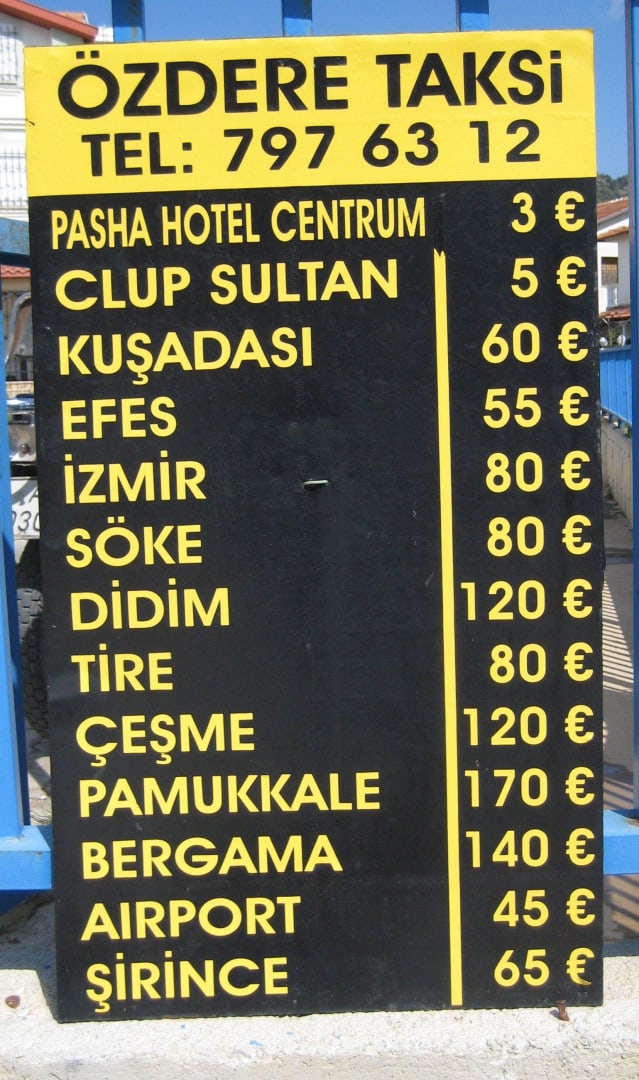 Info-Tafel Ausflüge: Taxipreise