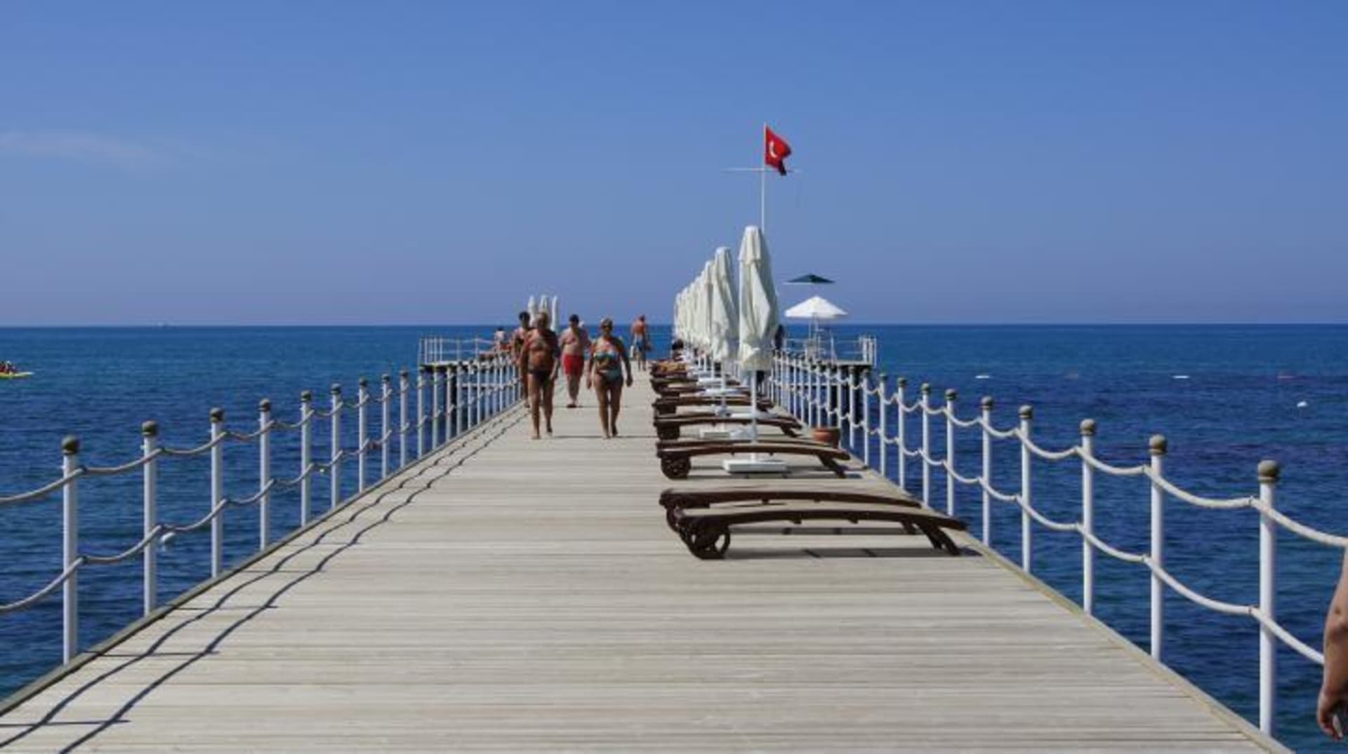 Bade-Steg mit Liegen, Schirmen & Lounge
