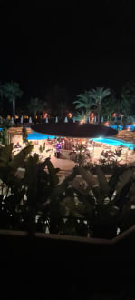 Abendblick, von der Lounge zur Poolanlage.