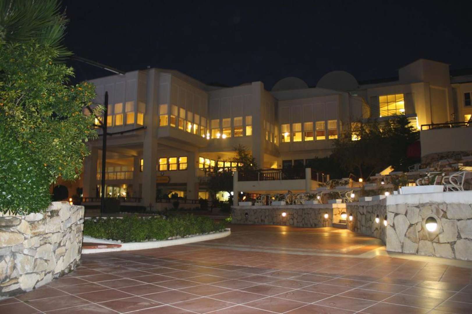 Hotel Perissia am AbendAufnahme vom Poolbereich zum Hotel